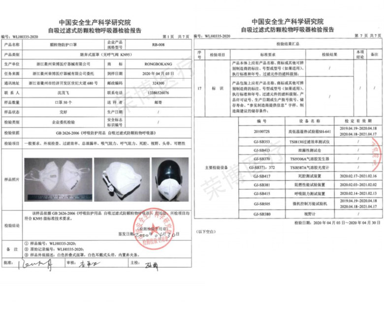 顆粒物防護(hù)口罩檢驗(yàn)報(bào)告